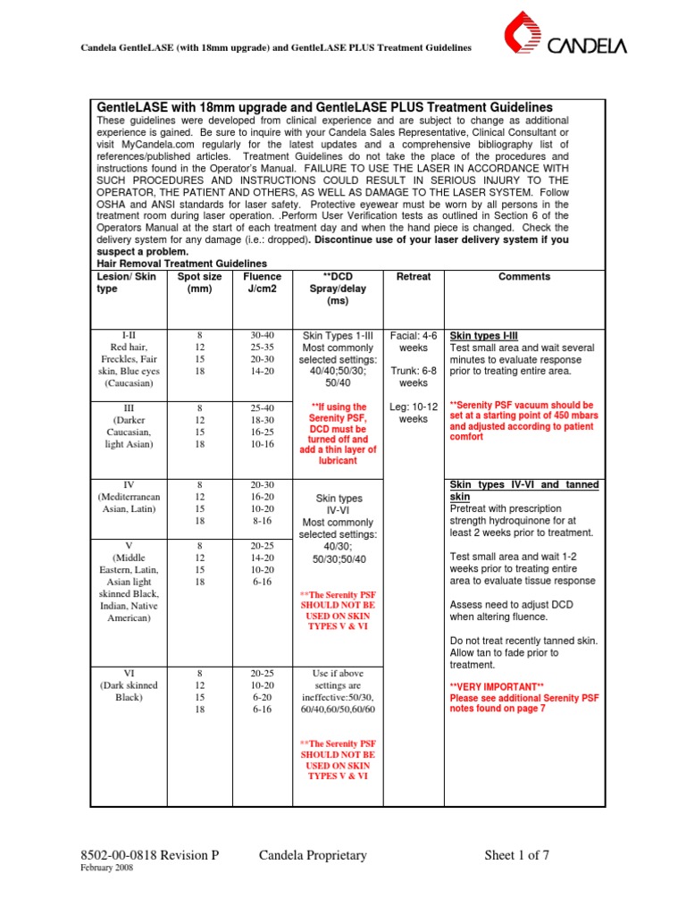 Gentlelase Settings Pdf Medical Specialties Health Sciences